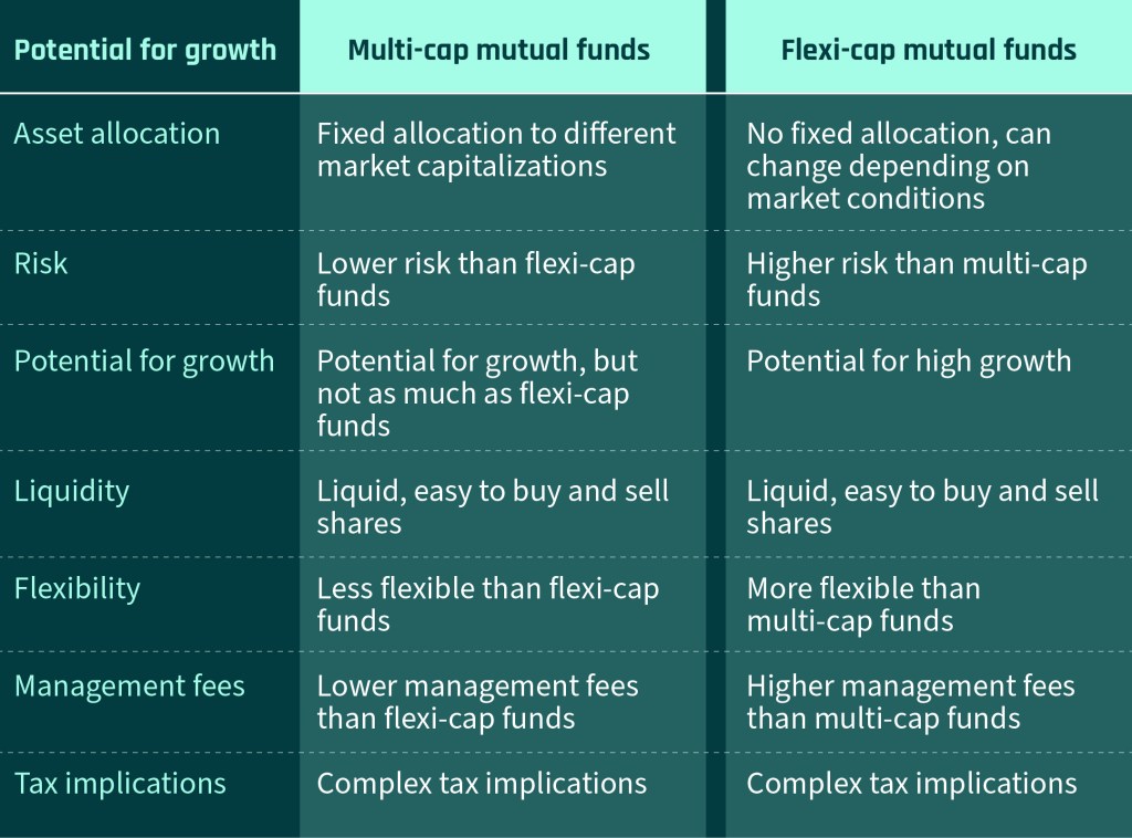 - Potential for growth: Multi-cap funds can potentially provide growth by investing in both large-cap and small-cap stocks.